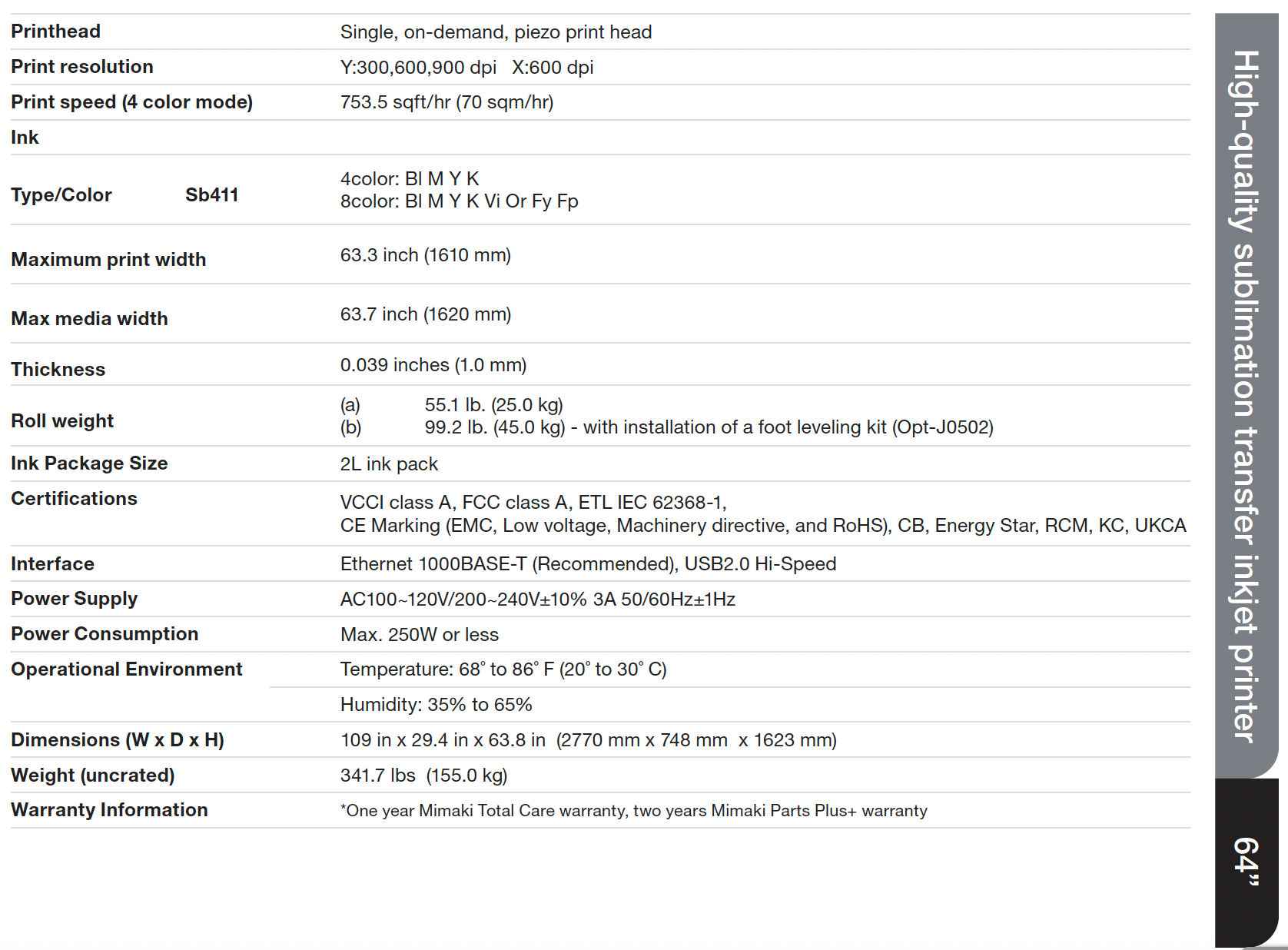 Mimaki TS200-1600 64" Dye Sublimation Printer