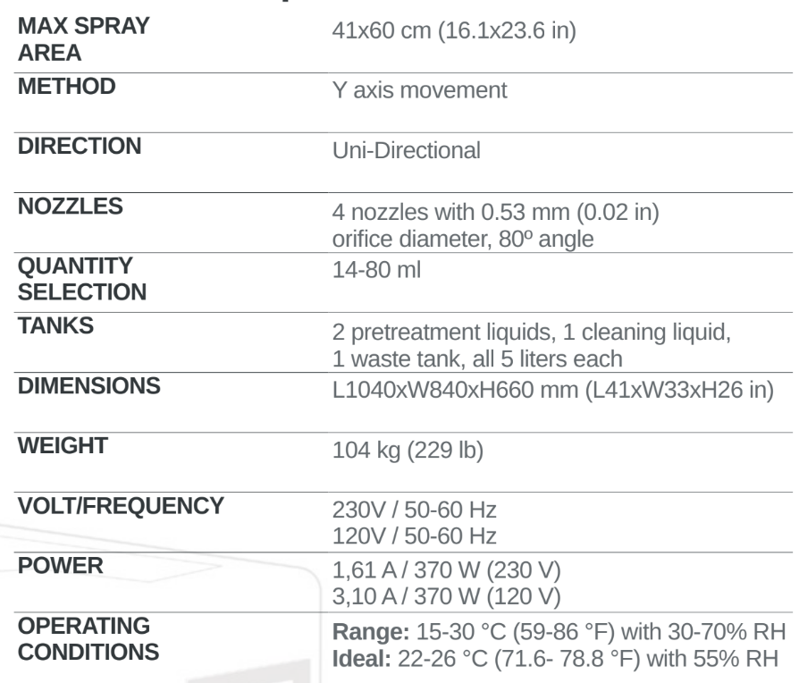 - Precision spraying to prepare garments for amazing prints, automation for less downtime, and simplicity for less mess and hassle.